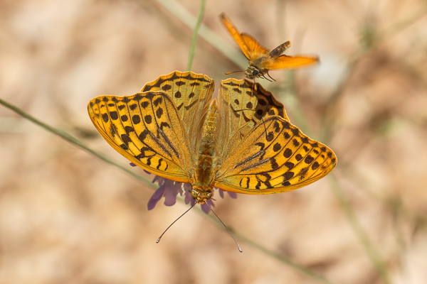 Argynnis aglaja, Großer Perlmutterfalter - Argynnis pandora, Kardinal - Melitaea didyma, Roter Scheckenfalter